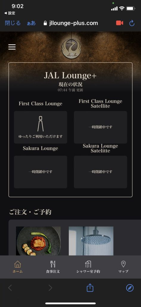 と思ったら、新型コロナウイルスの影響でサクララウンジが閉鎖中につき、ビジネスクラスユーザーもファーストクラスラウンジを利用して欲しいとのこと。ラッキー!