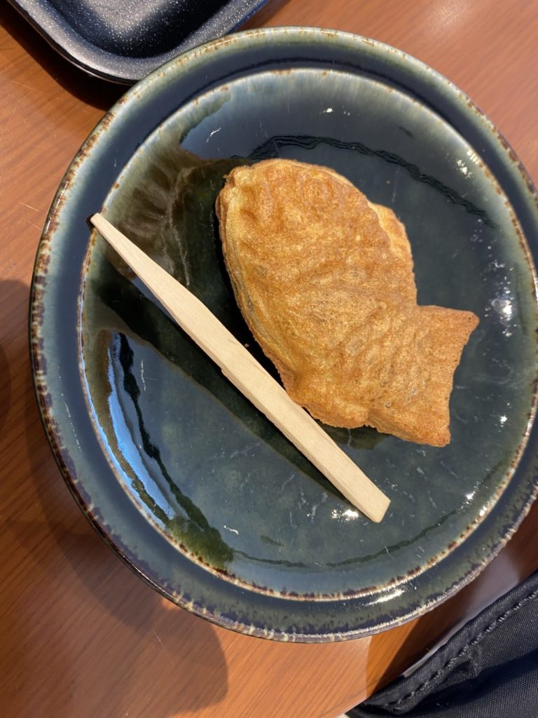 タイ焼き、手のひらサイズで外がカリカリ、美味しいです。