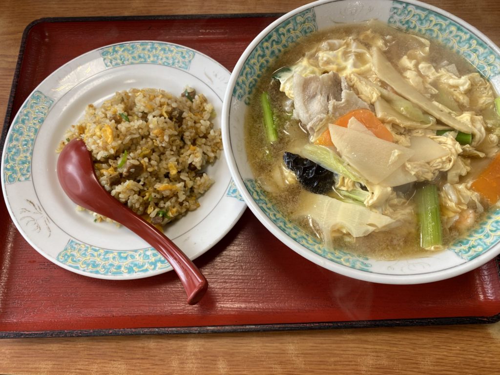 想像していた五目麺じゃねえ!五目餡やスープにはトロミがなく、中華そば(和歌山的な意味ではなく)に肉野菜炒めを乗せた感じです。味は美味しいですが、少し味が薄いですね。チャーハンはしっとり系ではなくパラパラ系です、無難に美味しいです。