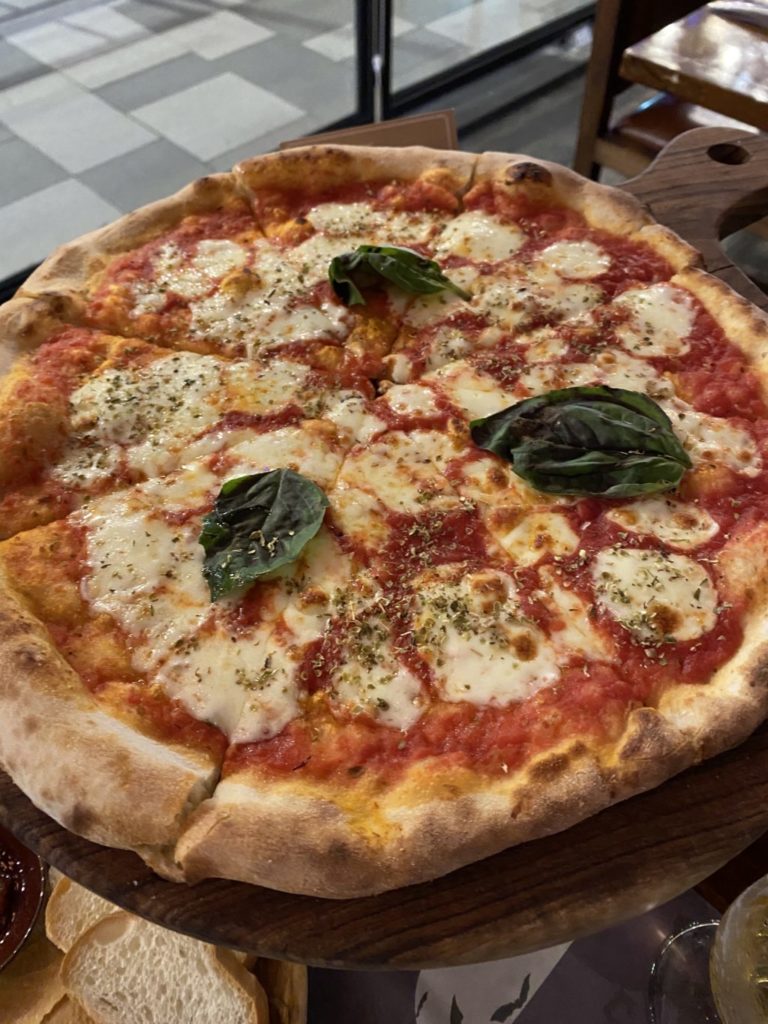ピザはマルゲリータをチョイス。これはまあ普通です。生地がイマイチかな、生地が少し厚く焼き時間が長いのか、ナポリピザらしいトロっと感がありません。