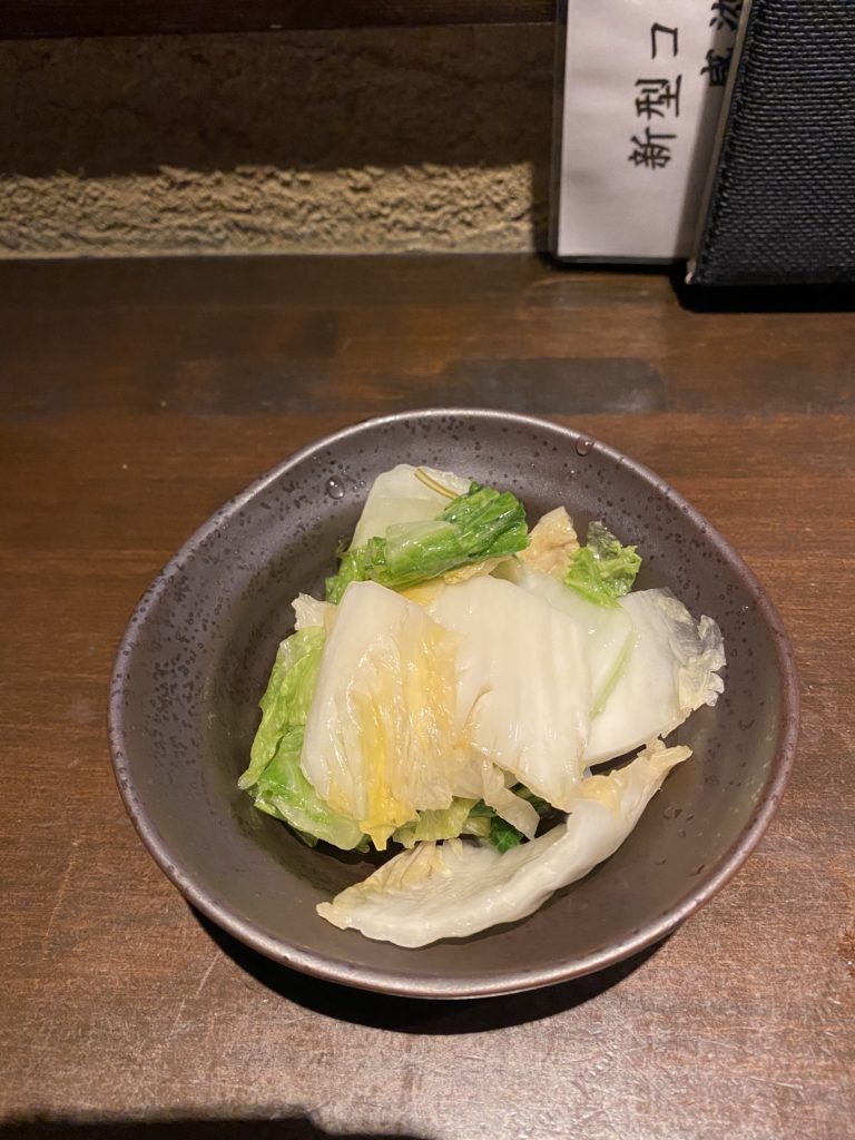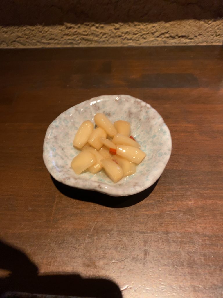 ビールはキリンとアサヒでしたので、キリンをオーダーしました。一口飲んだところ、何となく違和感?を感じました。ビアサーバーの掃除が甘いのか・・・?気のせいかもしれませんが、感じるものは感じるので2杯目以降はハイボールとしました。らっきょと白菜漬けは無難な味です。白菜漬けは外側の葉が多めで少し残念。