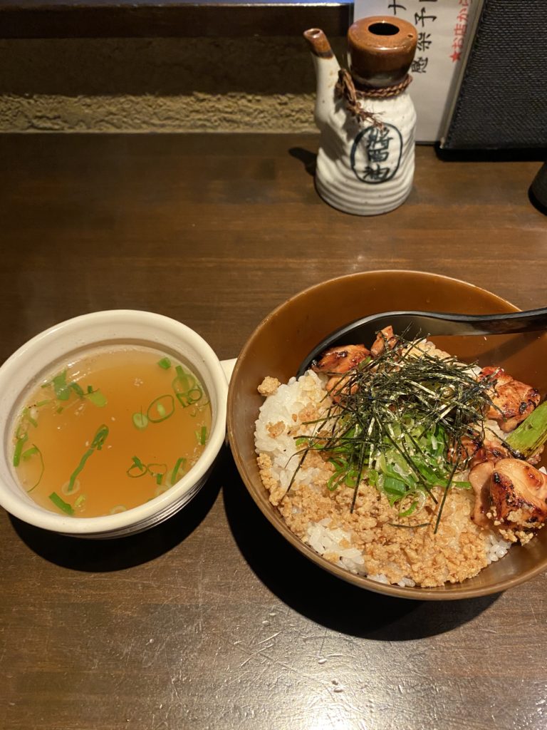 結構食べましたが、お腹に余裕がありましたので〆に焼き鳥丼(鳥スープセット)をオーダーしました。