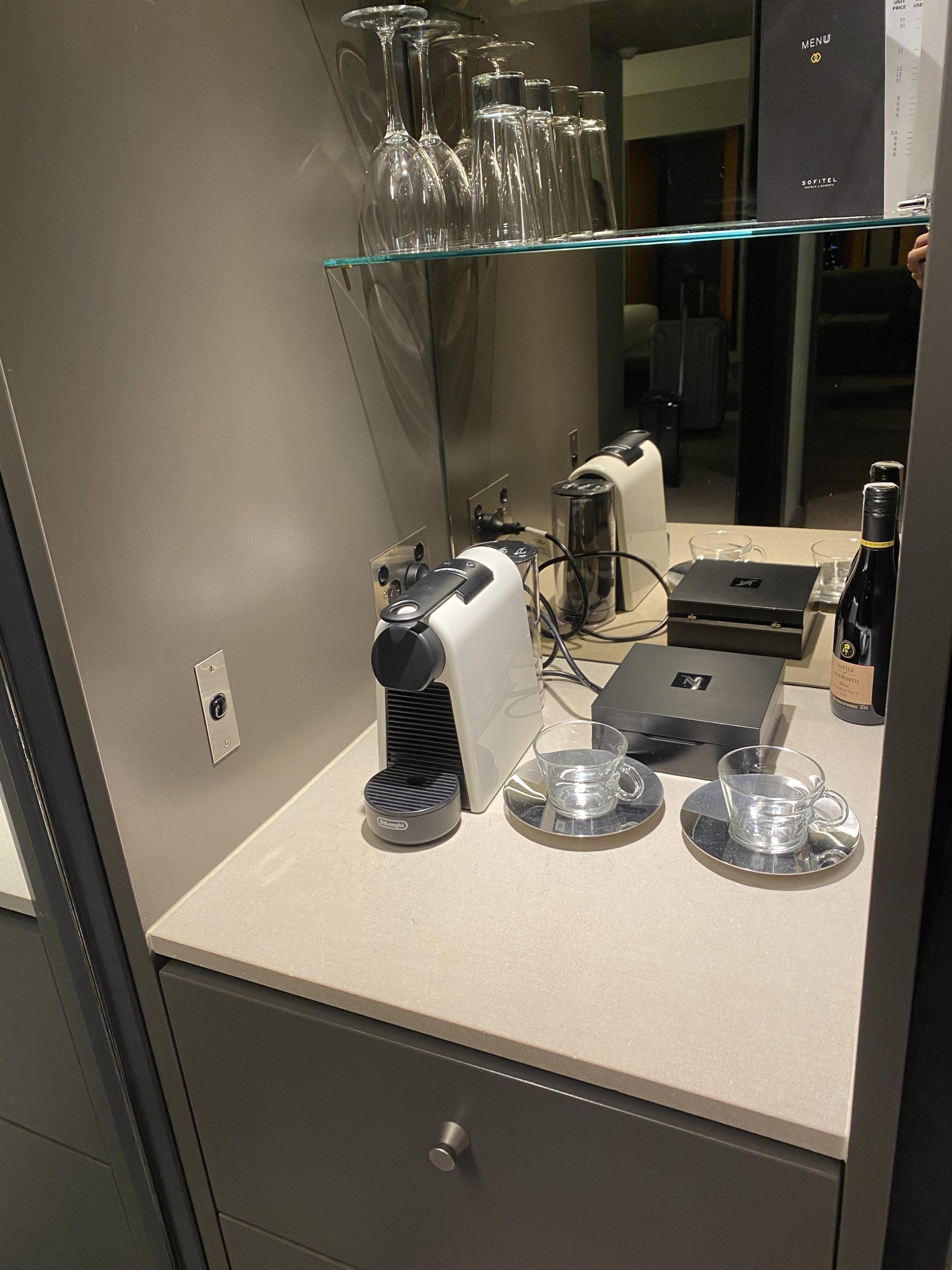 ミニバーはワインやビールなどが準備されています。ネスプレッソや紅茶(ティーパック)も完備。