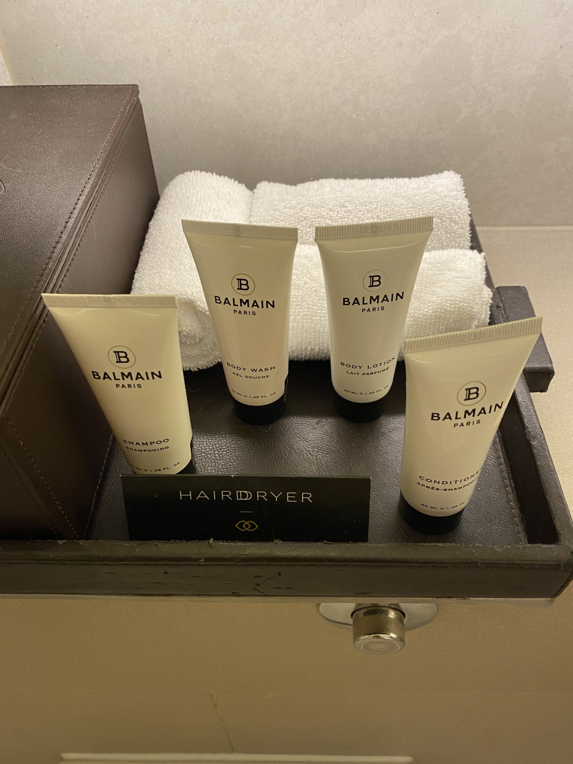 ボウルはシングルですね。アメニティはBALMAIN、流石フランスブランドのホテル。
