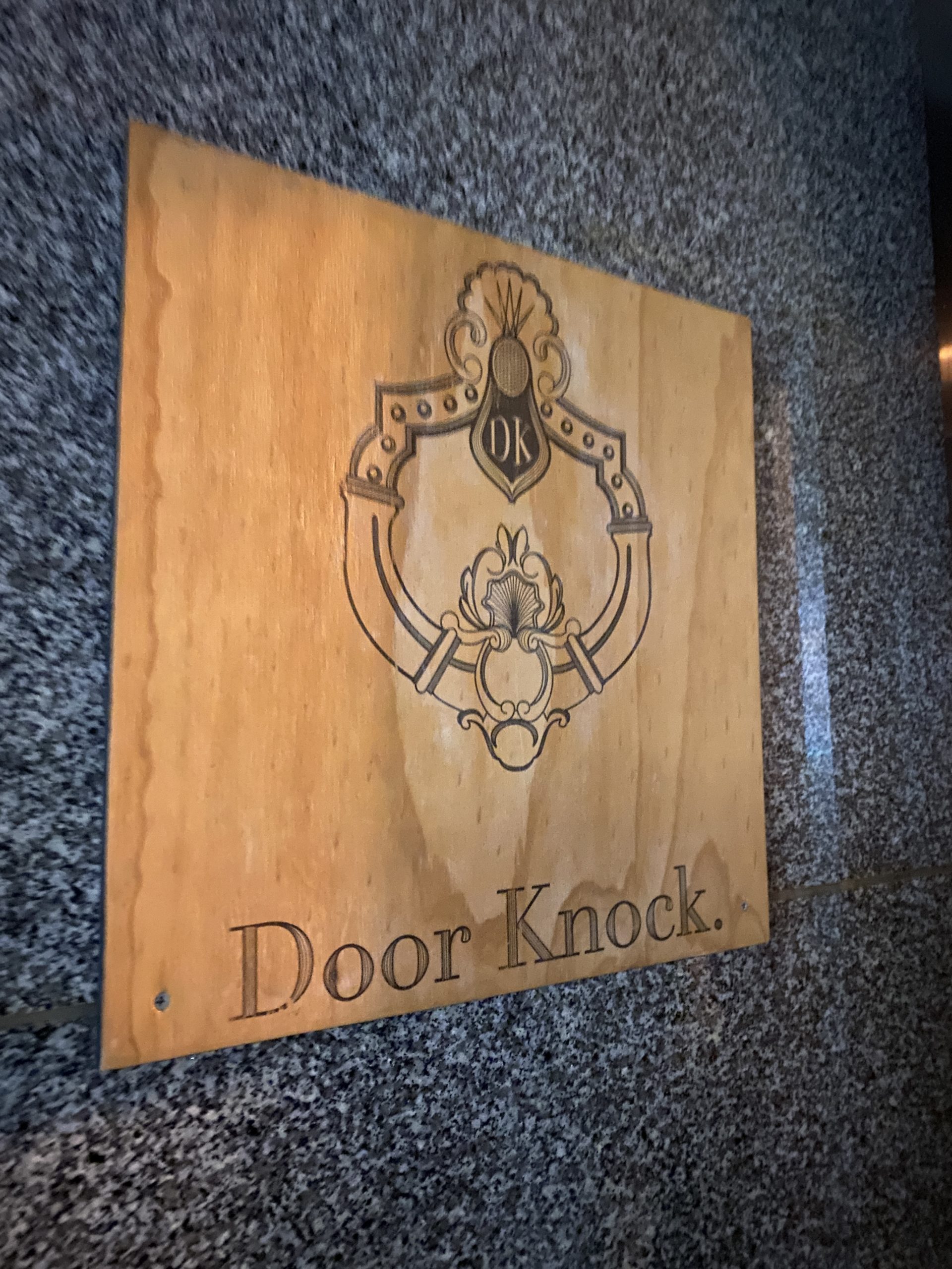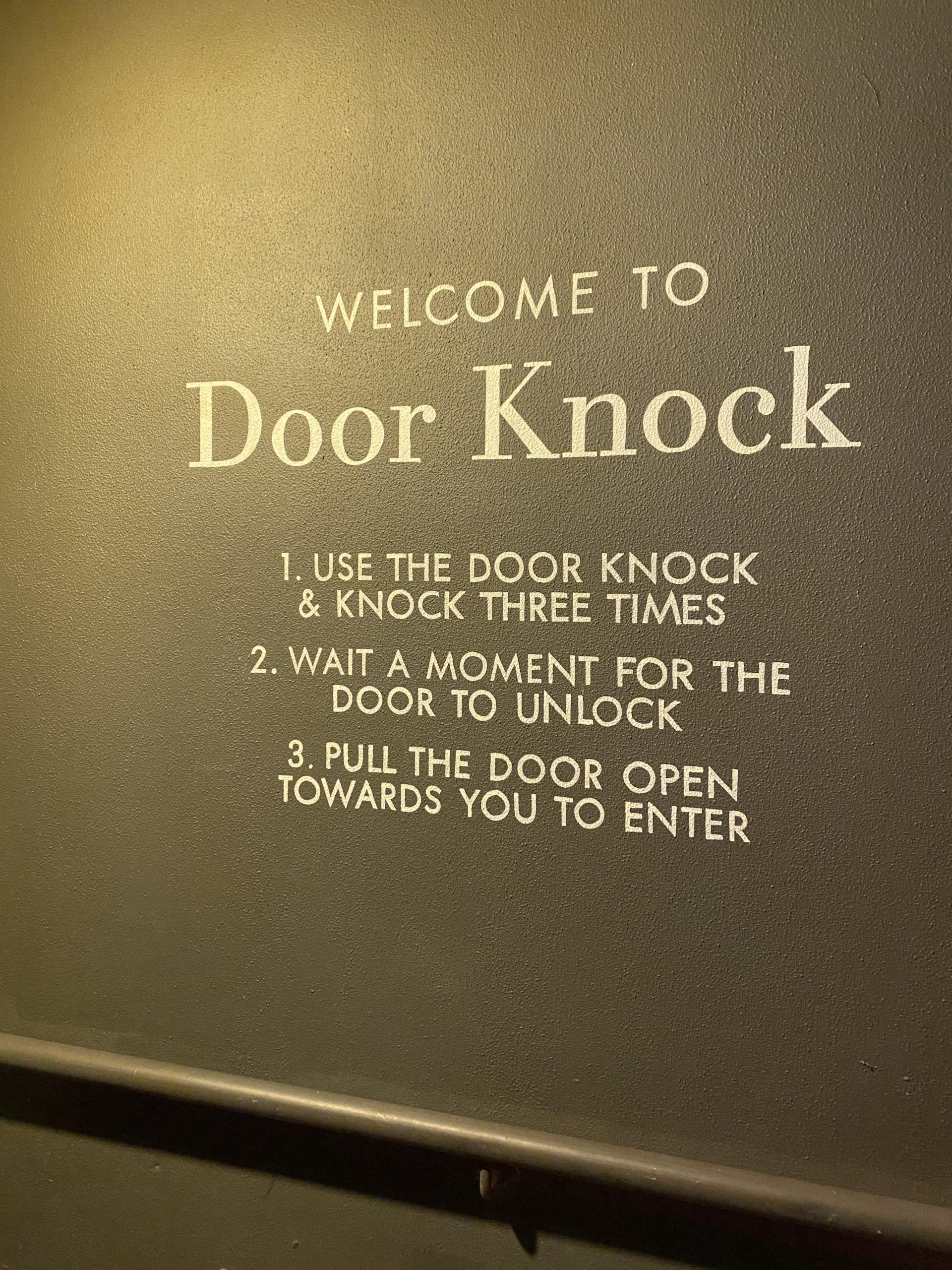 奥に進むと扉があるのですが、入口には写真の様な文が書いてあります。3回ノックしろと書いてあるので、指示に従いノックをして10秒程待ちましたが、音沙汰無。意を決してドアノブを回すと・・・