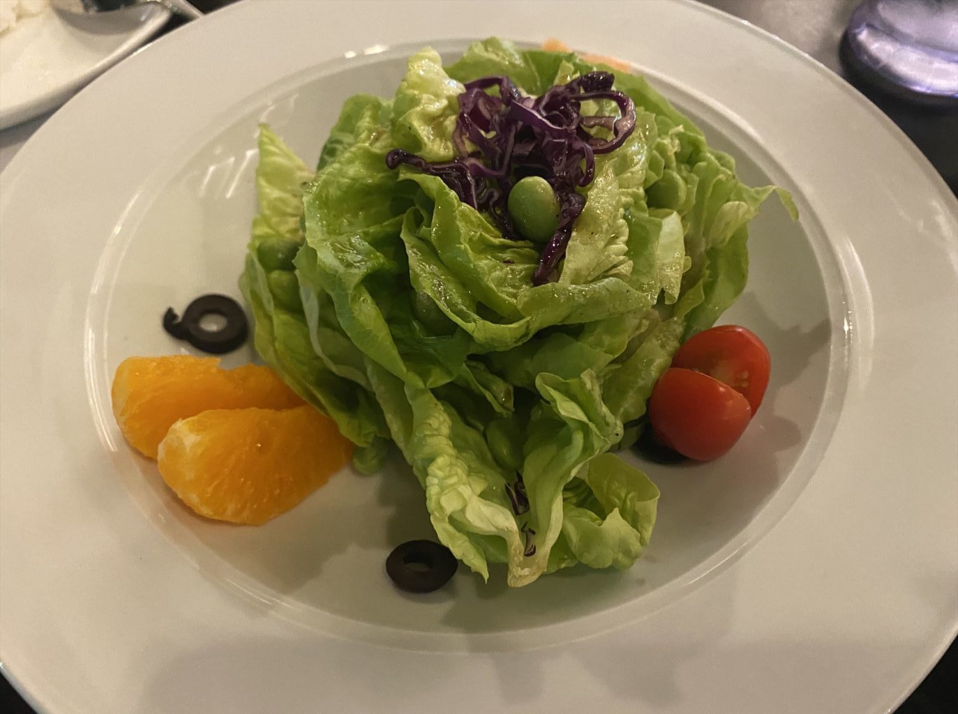 蟹以外はマジで大したことない、という情報を聞いているのに何故かオーダーしてしまったサラダ、その名もOKAYAMA SALADです。何が岡山要素なのか全くわかりません。ドレッシングはクソ甘ったるいし、謎にオレンジが乗ってるしで、マジで大したことありませんでした。