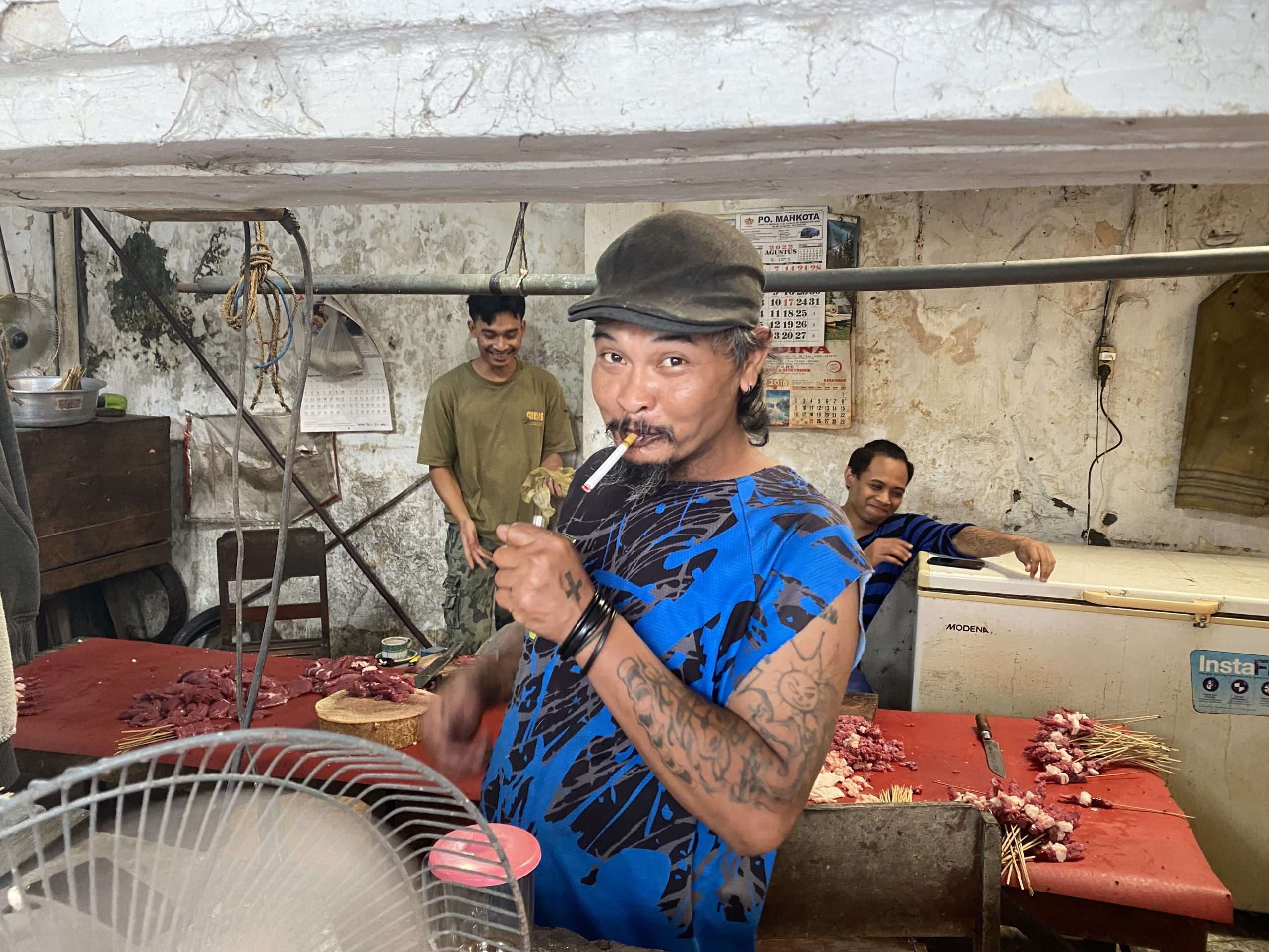先日、スラバヤから南西に2時間程の場所に位置するパレという町に行く機会がありました。一仕事終えて車で走っていると、何やら賑わっているサテカンビン(ヤギの串焼き)屋がありましたので突撃してみました。