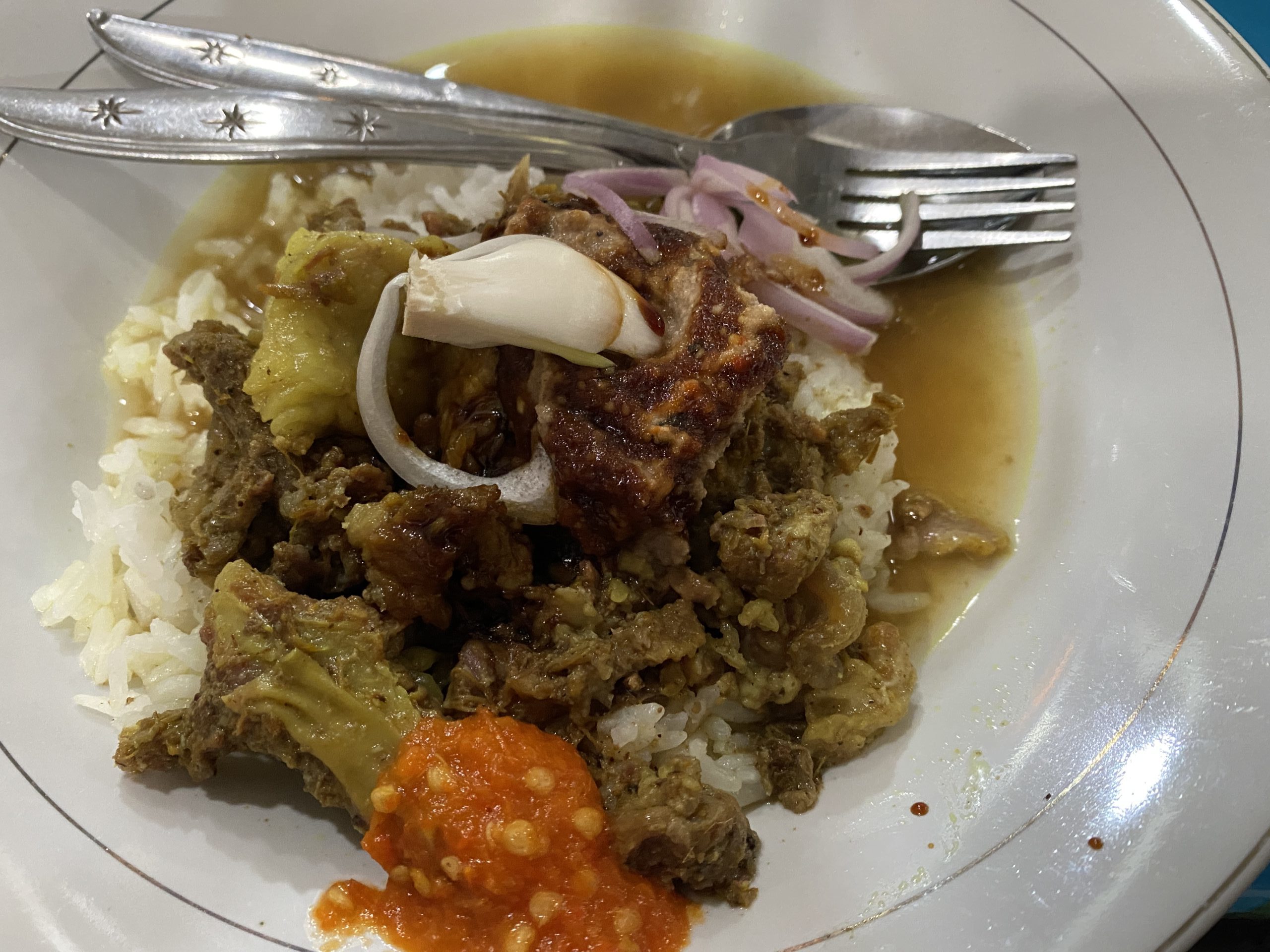 〆はGuleです。ヤギ肉以外にも内臓がたっぷり入っているのですが、こちらも臭みは皆無。見た目よりもあっさりした味付けで、サテを鱈腹食べた後なのにスルスルと入っていきます。