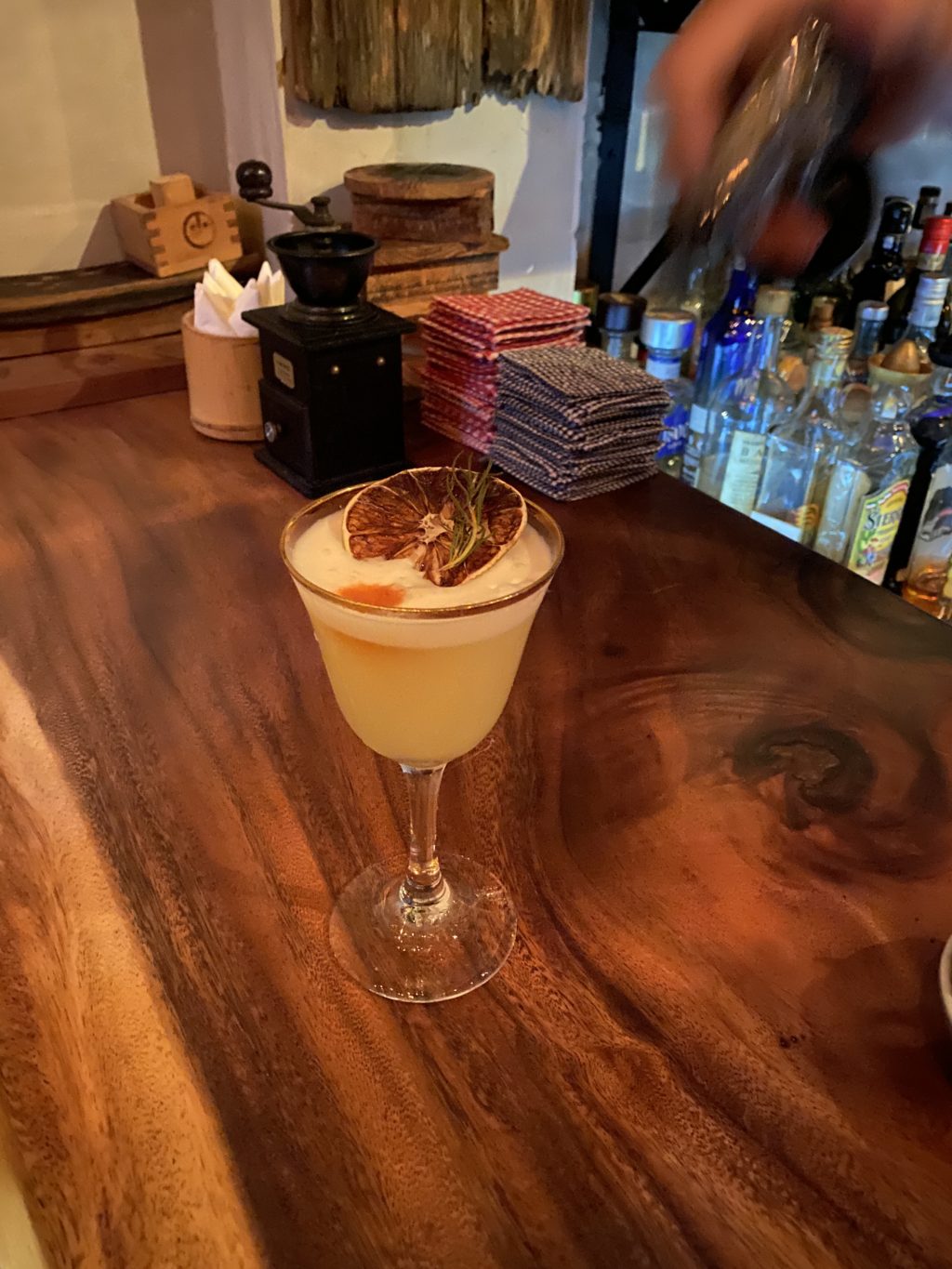 扉を開くと外の雰囲気とは一転、かなりいい雰囲気のBarが現れて一安心。店内はカウンター以外にテーブル席が有り、2階席もありそうです。結構ローカルのお客さんが多いですね。