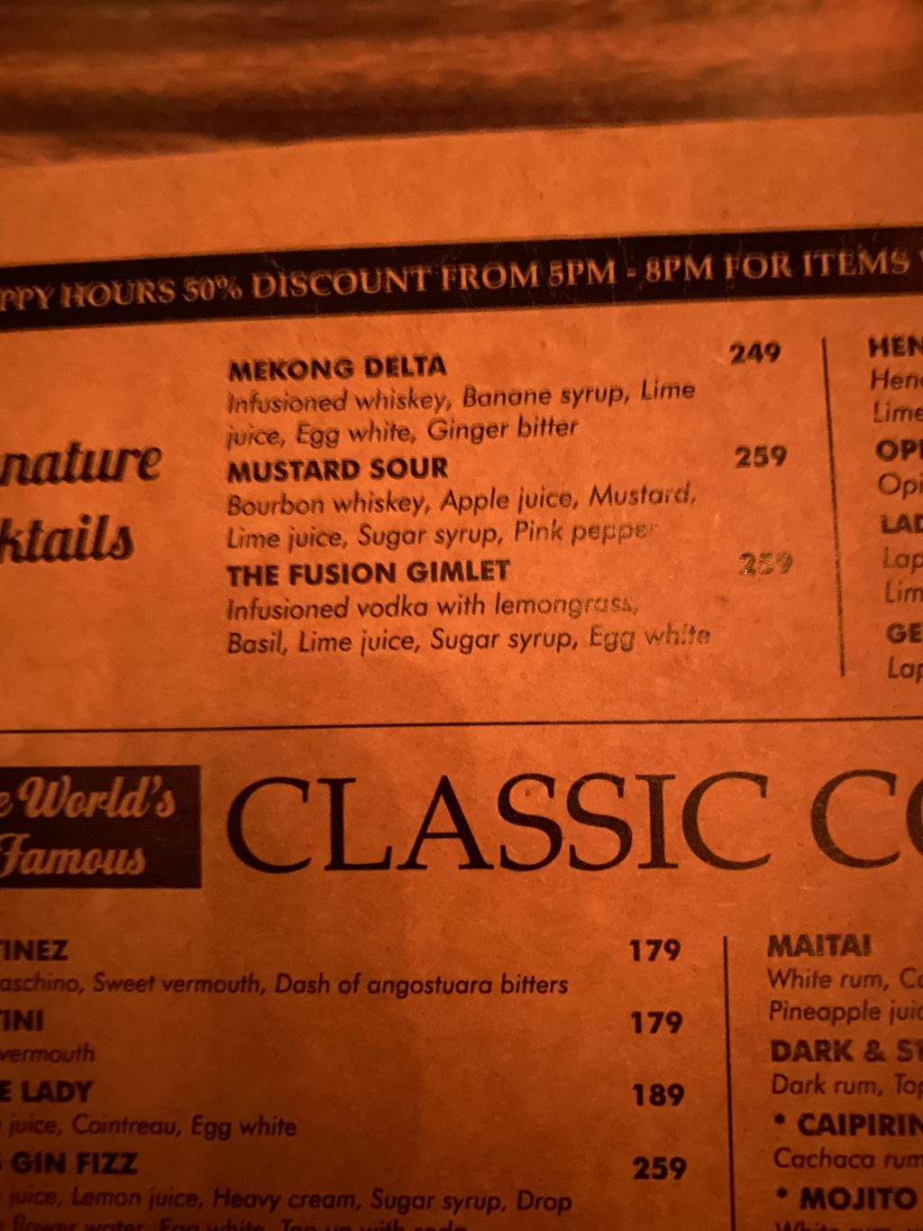 アルコールの種類もカクテルからウイスキーまで中々に豊富です。折角なのでsignature cocktailを色々と頼んでみました。